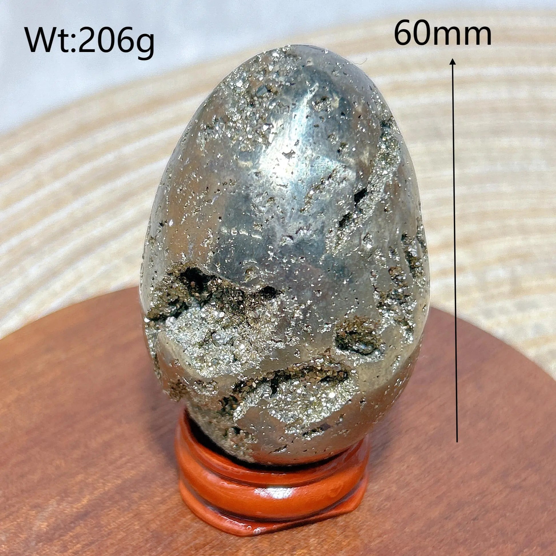 It’s a naturally formed pyrite crystal shaped into an egg, combining smooth polish with raw geode texture for balance and character.